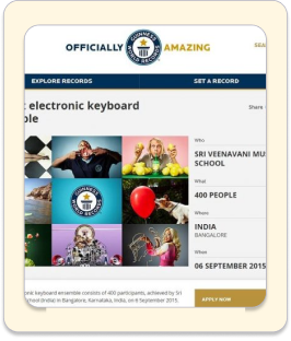 ‘Guinness Book of World Records’ , “limca book of records” and the 5 records ,for the largest keyboard ensemble.