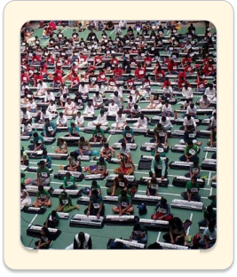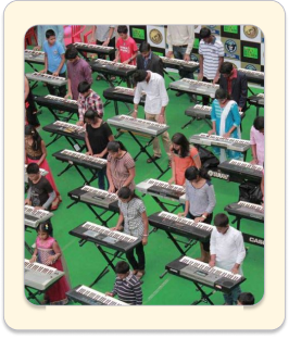 Carnatic classical music which has grown to the heights of Himalayas has been adapted by various kinds of western musical instruments and efforts are still being made in adapting it. To continue this wonderful heritage and make a mark to its existing credibility we organized an event on 1st week of September-2015 to play carnatic music using keyboard which will be one of the biggest Carnatic classical Keyboard performance. The objective of the program was to ensemble about 500 keyboard players, collectively performing the National Anthem, National Song and a Carnatic piece of music in a western instrument on one stage. This biggest musical event, ever held in the country and has entered the