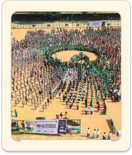 Largest human image of a country/continent – India map(3610 participants) , the state anthem(12000 participants) and largest djambe ensemble(640 participants).